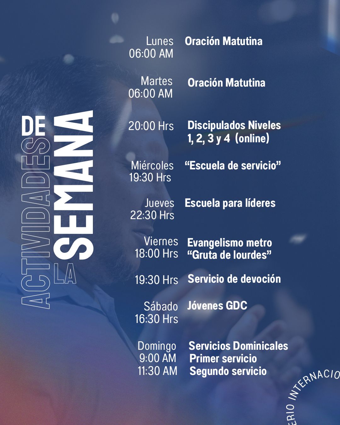 Estamos emocionados de recibirte en nuestra comunidad de fe, un lugar donde la adoración, el crecimiento espiritual y la conexión genuina se entrelazan para formar una experiencia única. En cada servicio, encontrarás un ambiente acogedor donde podras aprender y profundizar en tu relación con Dios. ¡Anímate y ven a visitarnos!